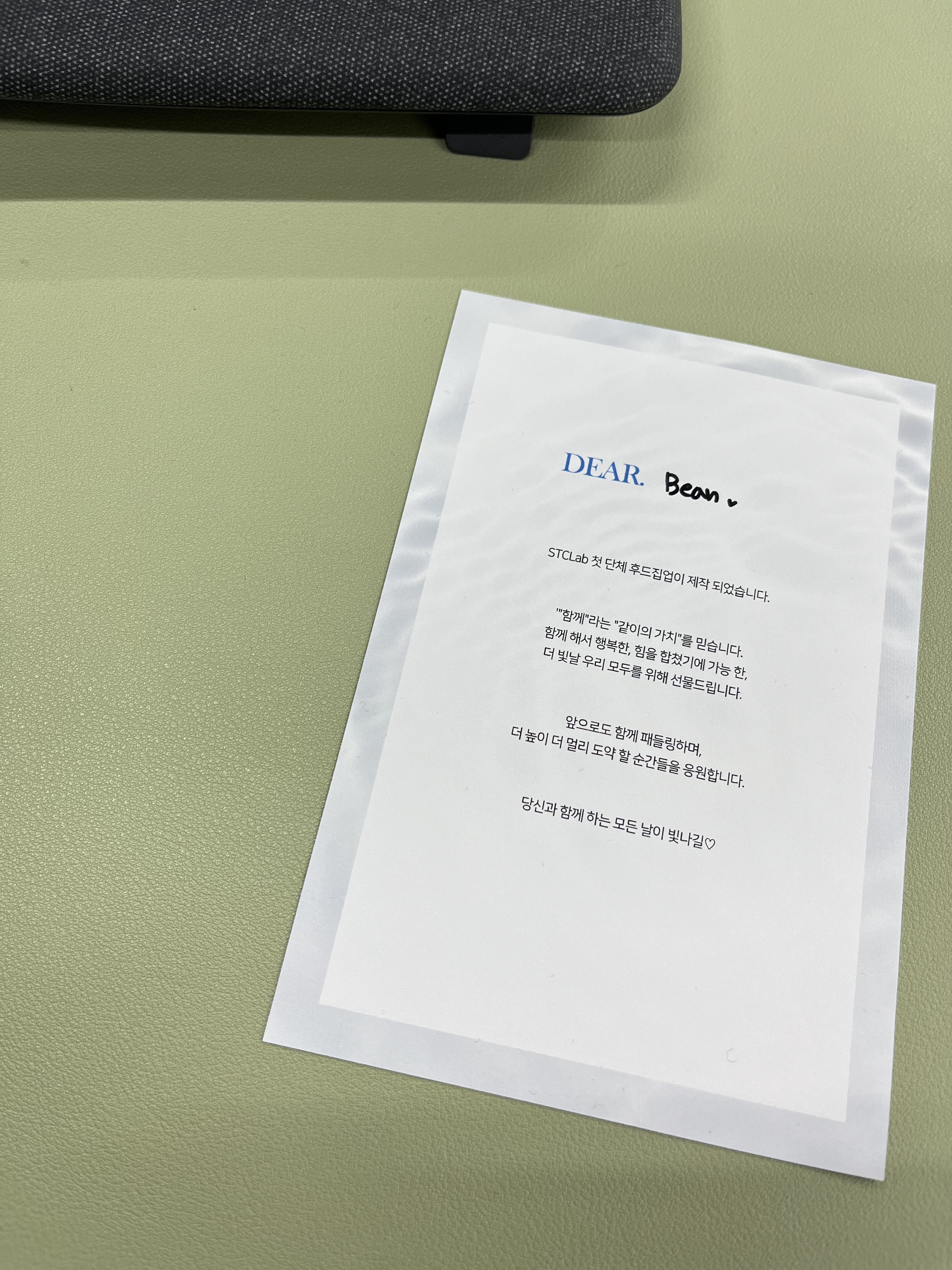 다른 분들이 출근하기 전, 옷과 함게 미리 책상위에 올려주었습니다.