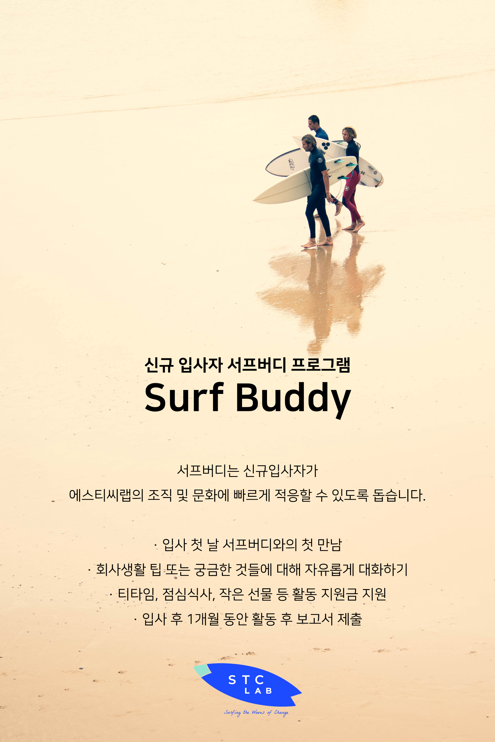 에스티씨랩은 신규 입사자 서프버디 프로그램을 운영중입니다.