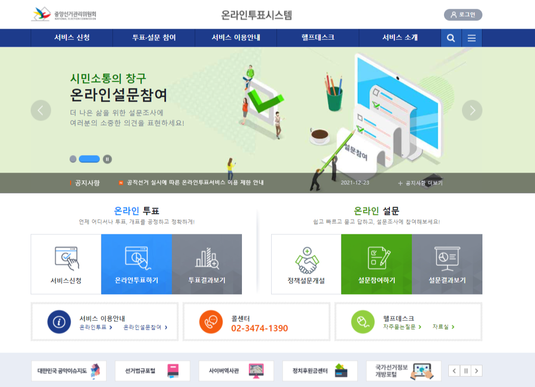 투표관리, 이용기관 관리자 대상 교육, 시스템 기술지원을 제공하는 서비스입니다.
